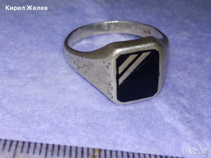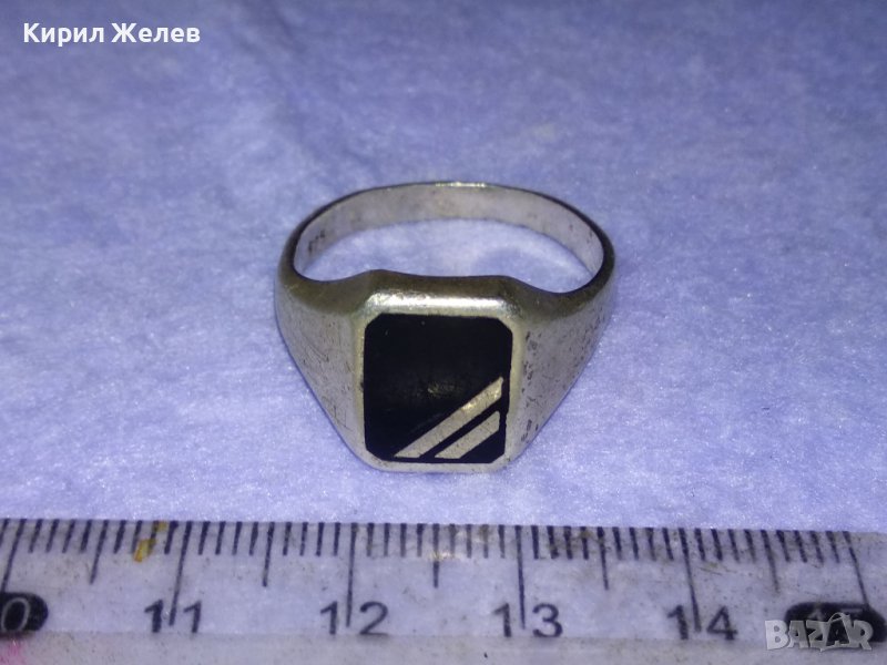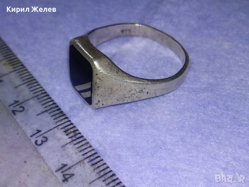 СРЕБЪРЕН РЕТРО ПРЪСТЕН СРЕБРО 925 АНГЛИЯ с ШЛИФОВАН ЧЕРЕН ОНИКС ЮВЕЛИРНА АРТ ДЕКО ИЗРАБОТКА 40629