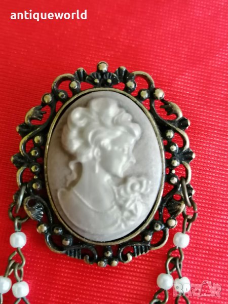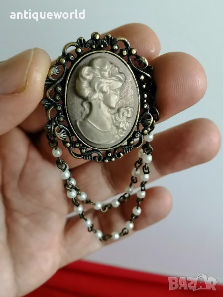 Много Красива Стара Брошка КАМЕЯ с Перлички.