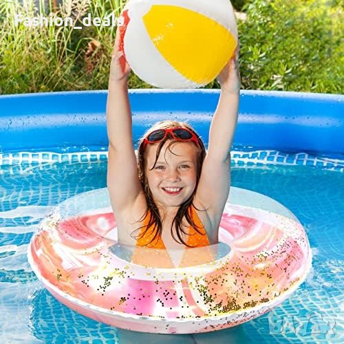 - Цветен надуваем плаващ пръстен със секвини за деца