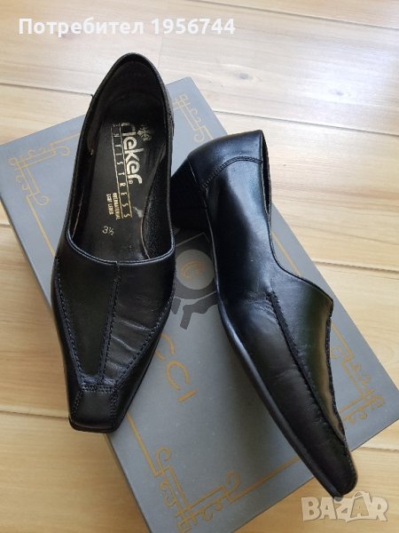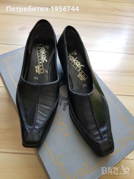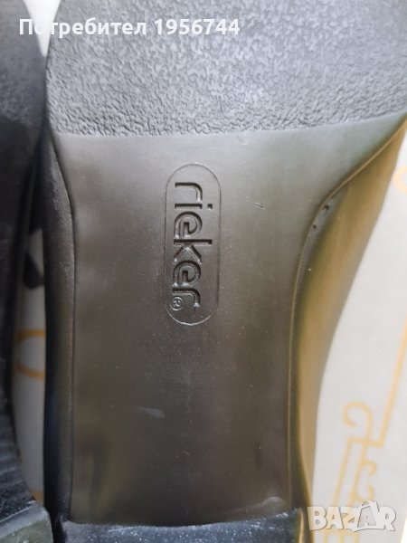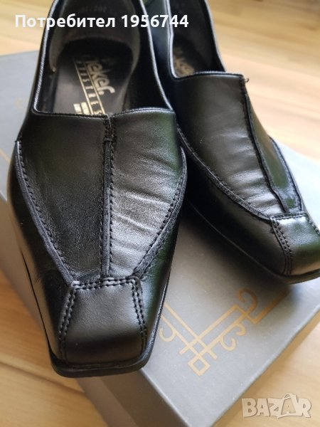 Дамски обувки от немската комфорт марка Rieker номер 36,5, но отговарят на 37 номер, дължината на стелката е 23,5см. Външната част е направена от висококачествена естествена кожа. Височината на тока е 3 см. Подметката е гъвкава и удобна. Меката стелка се грижи за оптималния комфорт. Изключително удобни дори и при дълго ходене. Обувани броени пъти, без забележки.