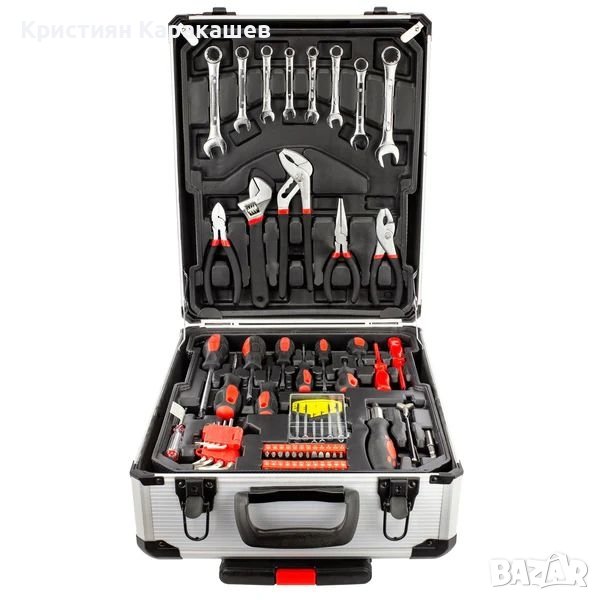 Удобно куфарче на колелца, леко, изработено от алуминий, с цели 1050 инструмента от хром-ванадиева стомана.