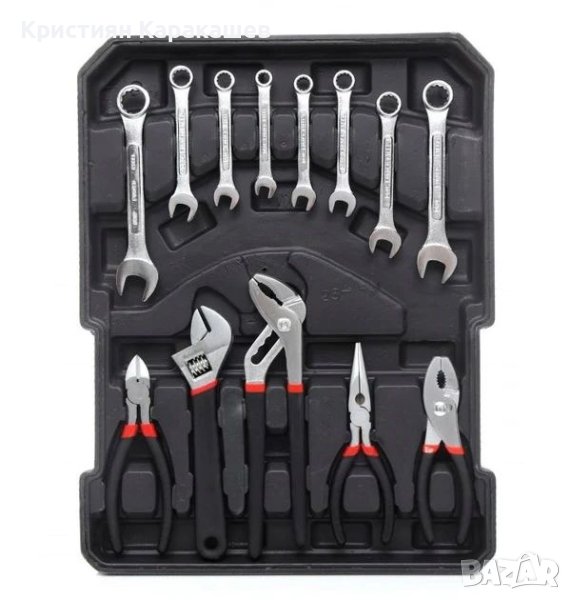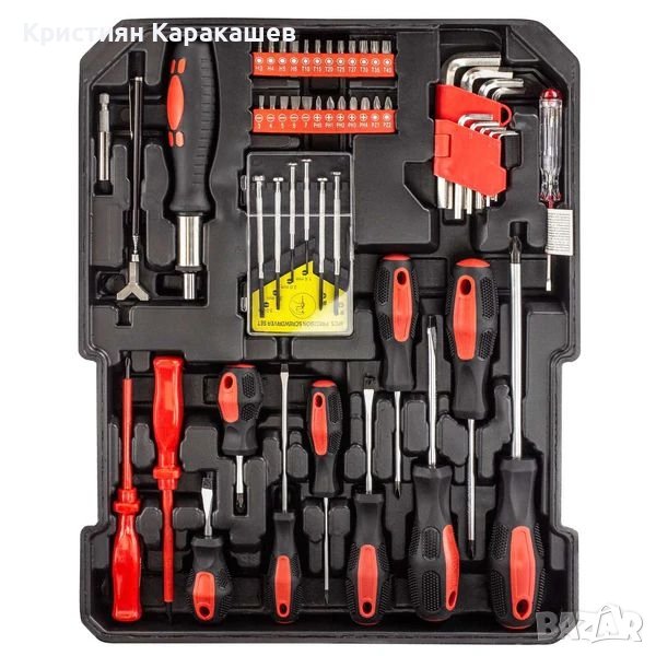 Сред инструментите ще откриете отвертки, френски ключове, клещи, макетни ножове, шестограни и много други, разпределени на четири нива, както следва: