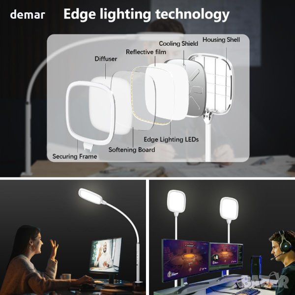 Тази 20 W настолна лампа се отличава с яркост от 1500 лумена и обширна 17 см квадратна глава за равномерно осветление. Използвайки LED технология с осветени ръбове, той предлага меко осветление за минимизиране на напрежението на очите. Персонализирайте своята яркост (20%-100%) и цветова температура (3200K-6500K) чрез сензорни контроли или предоставеното дистанционно управление, което също съхранява вашите предпочитани настройки. Алуминиевата структура на лампата позволява завъртане на 360° за оптимално позициониране, докато нейната здрава гъша шийка поддържа стабилност. Лесно монтирайте тази спестяваща място лампа със своята функция за затягане, подходяща за повърхности с дебелина до 5,6 см. Пакетът включва лампа, отвертка, винтове, захранващ адаптер, дистанционно и ръководство за потребителя.
