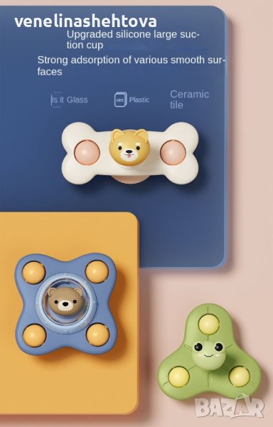 Бебешки играчки Spinner: Въртящите се играчки включват 3 различни форми и картинки на животни и цветя в различни ярки цветове. Играчките спинери с вендузи и звънчета могат по-лесно да привлекат вниманието на малките деца и да събудят интереса им.
