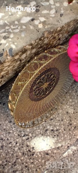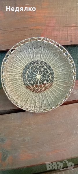 Не знам какъв е,не е сребро,красива стара филигранна изработка,диаметър-22 см,височина- 5 см.