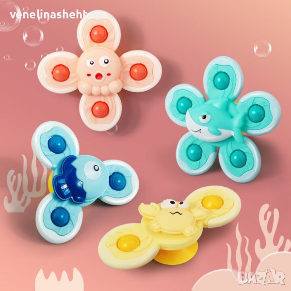 Бебешки играчки Spinner: Въртящите се играчки включват 3 различни форми и картинки на животни и цветя в различни ярки цветове. Играчките спинери с вендузи и звънчета могат по-лесно да привлекат вниманието на малките деца и да събудят интереса им.