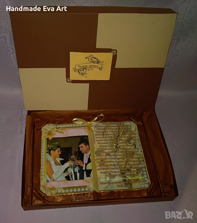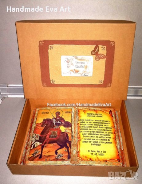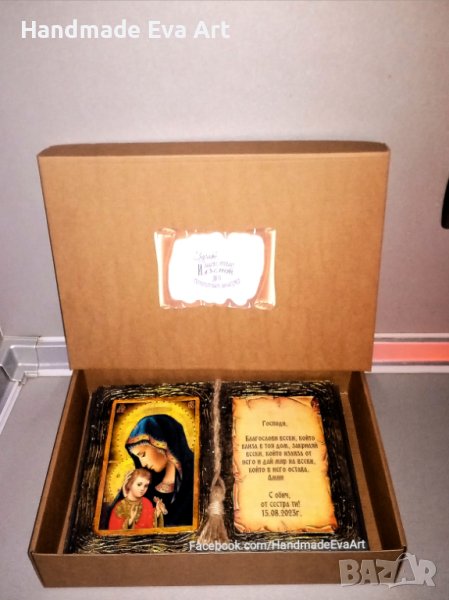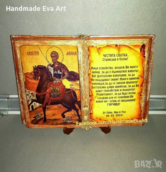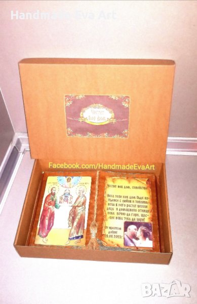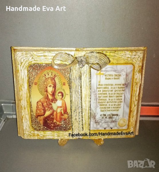 Подарък за Сватба/ Брак/ Църковен брак/ Годишнина- ръчно изработени с икона (+ снимка) и личен Ваш поздрав: