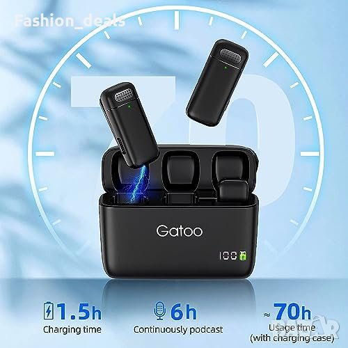 Безжичен микрофон Gatoo с кутия за зареждане за iPhone, iPad