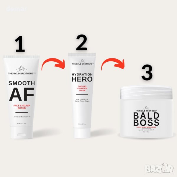 Комплект грижа за плешива глава за мъже 3 части The Bald Brothers