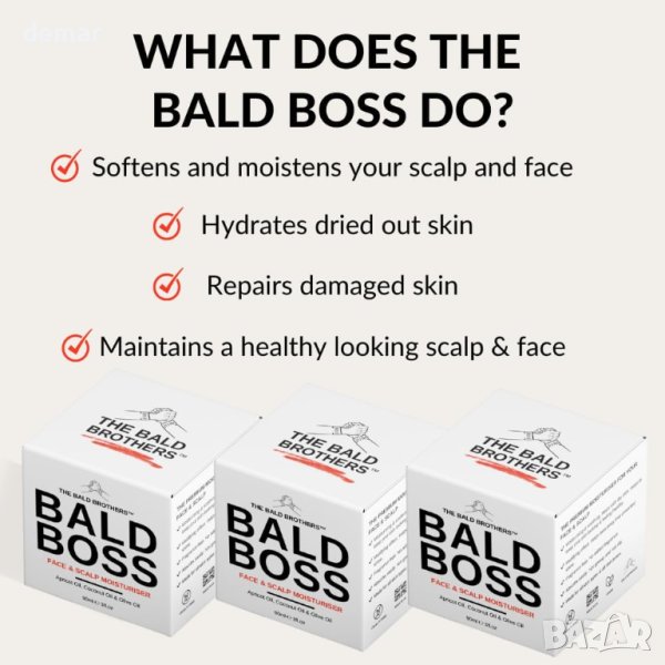Представяме ви Bald Boss - немазен хидратант за вашия скалп и лице. Оставя кожата ви да се чувства здрава и щастлива, хидратира, успокоява и омекотява само с малко нанасяне.