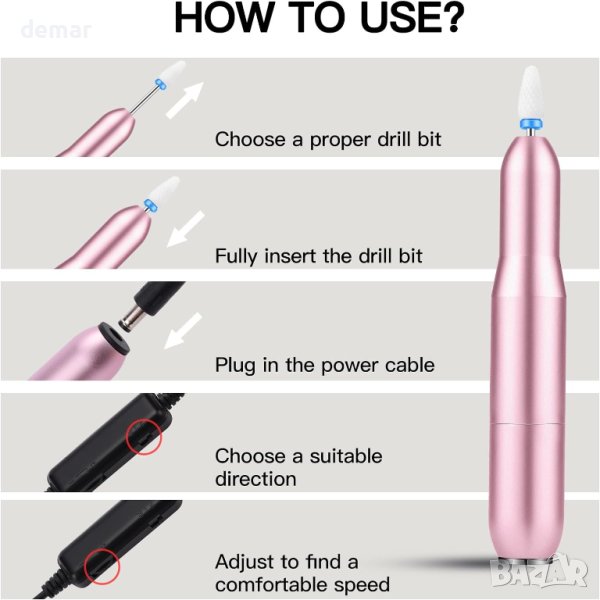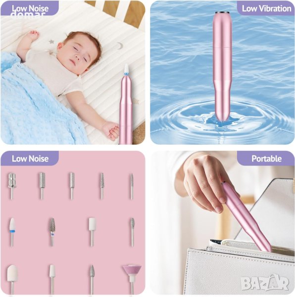 Този многофункционален комплект свредла за нокти включва електрическа бормашина, USB захранващ кабел, 13 свредла, 56 шлифовъчни ленти, пила за нокти, четка за прах и ръководство за професионална грижа за ноктите у дома. Той предлага регулируема скорост (0-20000rpm) и посока напред/назад за безопасно и ефективно полиране на ноктите. Комплектът включва керамични и волфрамови карбидни битове за естествени и изкуствени нокти, генериращи минимално прах и топлина. Идеален за шлайфане, скулптуриране, рязане и полиране на акрили, гелове и кутикули, той е подходящ както за начинаещи, така и за професионалисти. Неговият ударопоглъщащ дизайн, прецизният мотор и интелигентното разсейване на топлината осигуряват ниска топлина, нисък шум и ниски вибрации по време на употреба. Перфектен за домашна и салонна употреба.