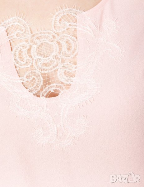 Дължина среда гръб цялостна 90см, от рамо до рамо 40см, от подмишница до подмишница 48,5см, дължина на ръкав от рамо 23см, обиколка на талия 95см, ханш едностранно мерено 52см (обиколка 104см). Роклята е без еластичност, много нежен цвят - светло син, има странично скрит цип за лесно обличане със състав 70% ацетат и 30%вискоза