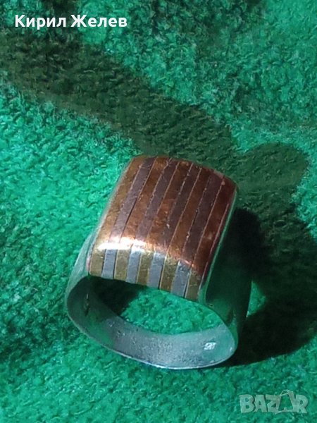 Стар АНГЛИЙСКИ ВНУШИТЕЛЕН СРЕБЪРЕН ВИНТИДЖ ПРЪСТЕН СРЕБРО 925 и БРОНЗ МАЙСТОРСКА РЪЧНА РАБОТА 40639