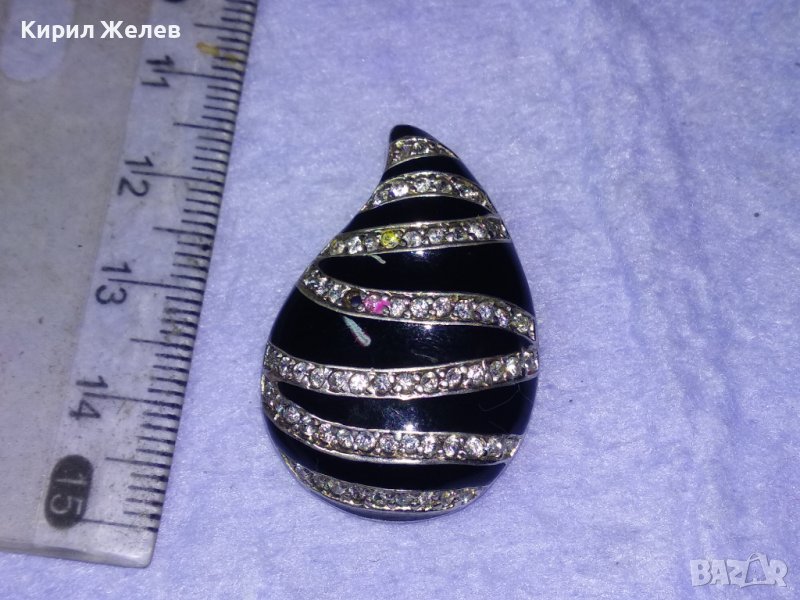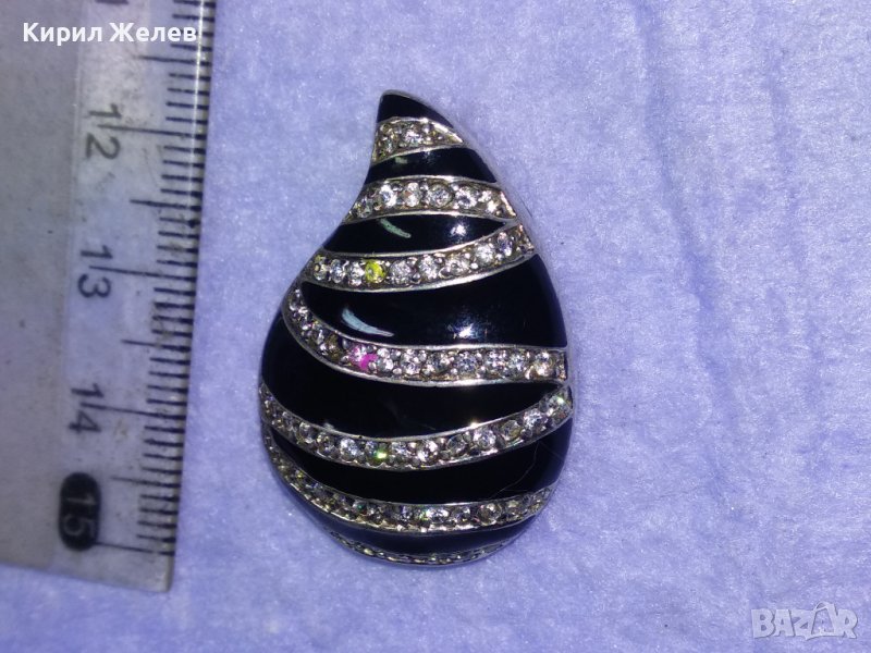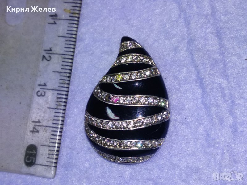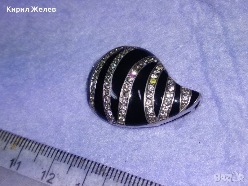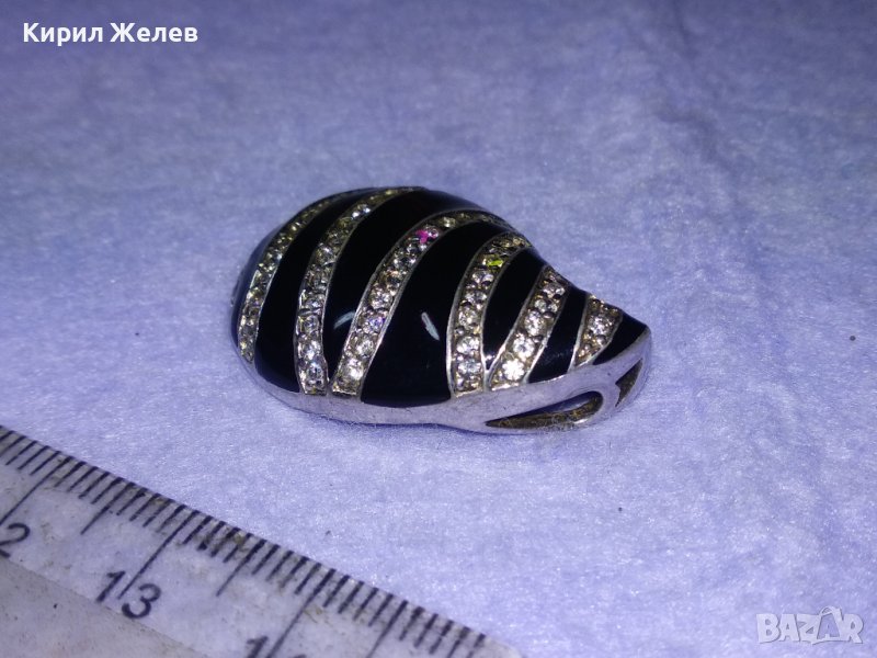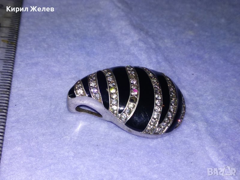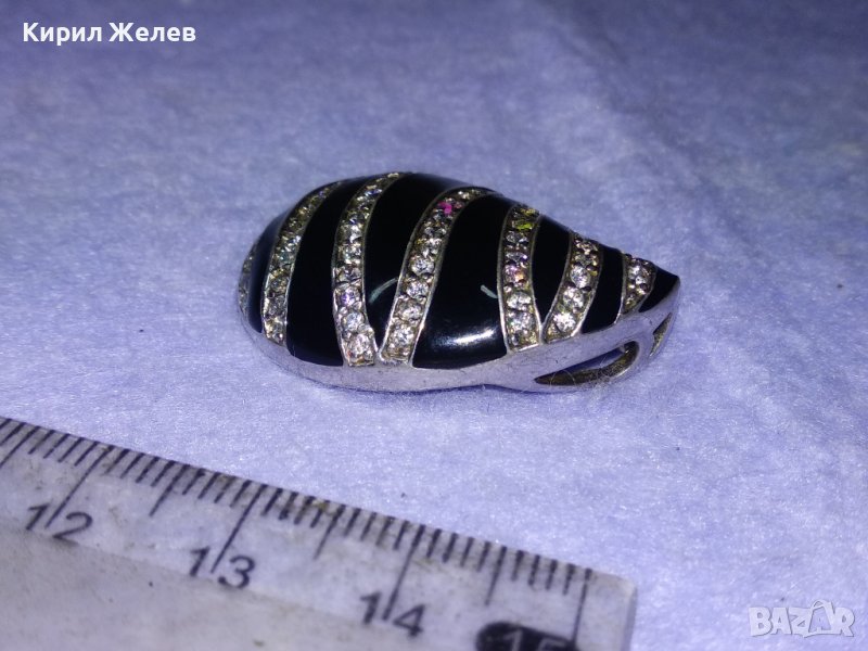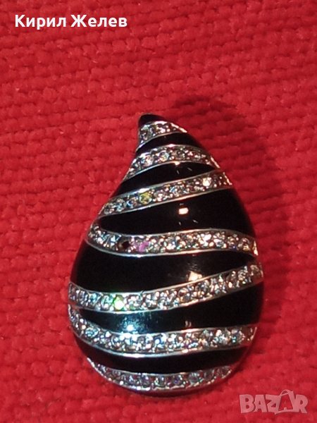 ПРЕКРАСЕН БУТИКОВ ФЕШЪН АРТ МЕДАЛЬОН РОДИРАНО СРЕБРО 925 с ЧЕРЕН ЕМАЙЛ и ИСКРЯЩИ ЦИРКОНИ 39989