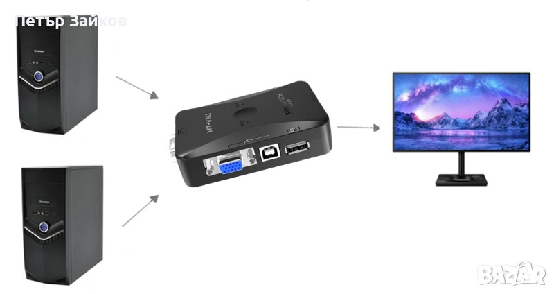Конекторът на превключвателя поддържа Plug and Play и не изисква инсталиране на драйвер или промяна на системните настройки, за да го използвате. Можете също така бързо да превключвате между компютри, като натиснете бутон на продукта.