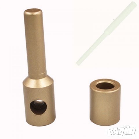 Пъхнете мъжката част на тефлоновия накрайник в тръбата, така че да навлезе малко повече от дебелината на стената на тръбата. В това време с другата ръка пъхнете полипропиленовата пръчка, която ще получите с комплекта в женския тефлонов накрайник на необходимата дълбочина (малко повече от дебелината на стената на тръбата, може да си отбележите с флумастер или молив).