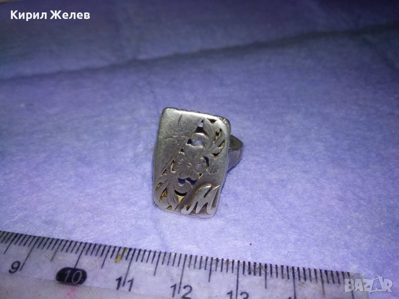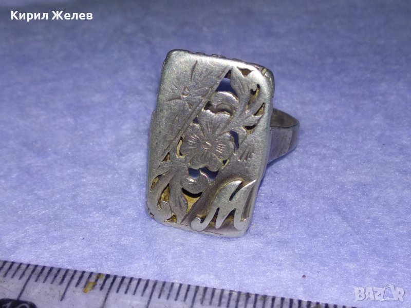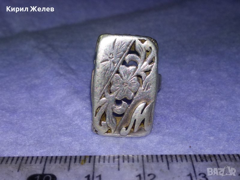 РАЗКОШЕН Старинен АРТ НУВО ФЛОРАЛЕН Регулируем СРЕБЪРЕН ПРЪСТЕН с Буква М Висока ПРОБА СРЕБРО 40645
