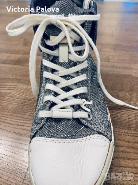 Интересни красиви модерни сребристи кецове, високи 17 см, но има вариант да се подгънат ( фиксират се с копчета тик-так) - в подгънатия вид са 12,5 см високи. Стелката е 25,8 см. Replay - култов италиански бранд за прогресивна младеж и за тях, който е задгърбил стереотипа на възрастта и предпочита динамични и ултрасъвременни модни решения🤣