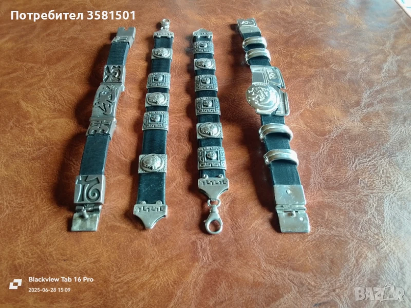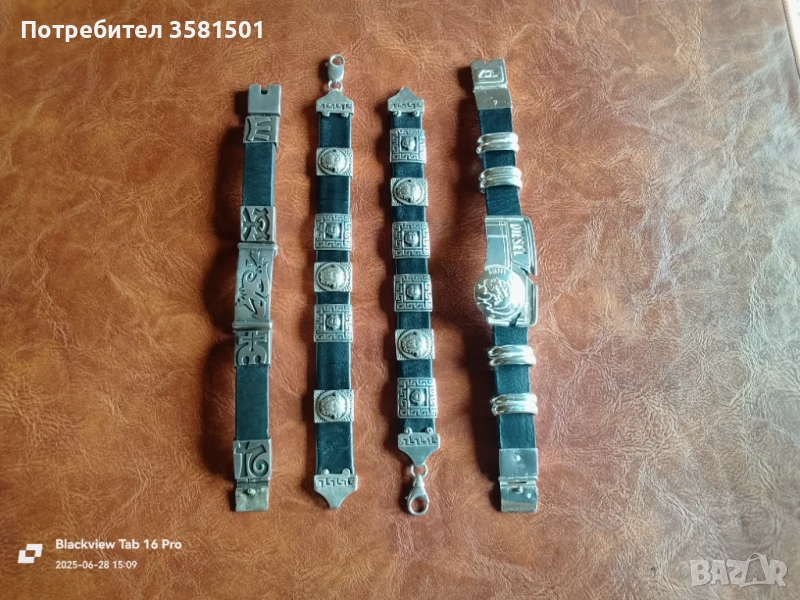 Лот от 4-Сребърни Гривни Кожа и Сребро Версаче Дизел.