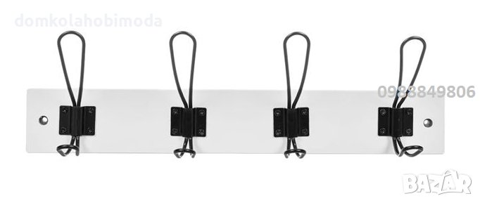 Описание - Характеристики Бяла закачалка за стена и 4 двойни метални кукички. Пакетът крепежи за монтаж. Цвят Бяло Материал на продукта Метал MDF