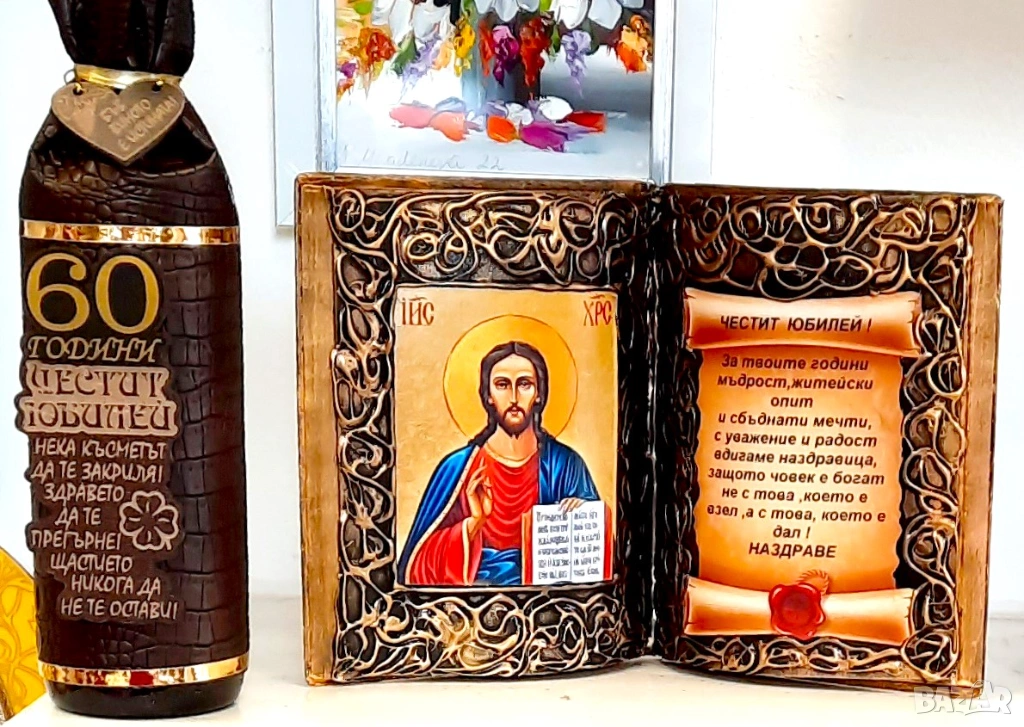 Книга - икона със Св. Димитър с оригинално пожелание за всякакъв годишен юбилей - 50, 60, 70, 80 или 90 години на мъж или жена .