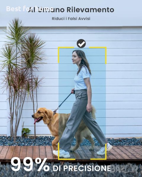 AI разпознаване на хора и PIR откриване на движение: Не е задължително да настроите разпознаване на хора или да го изключите, за да откривате други обекти като домашни любимци, превозни средства. Надграденият PIR сензор ви позволява да получавате известие за аларма за по-малко от 3 секунди, където и да сте, можете да записвате видеоклипове на събитието и да ги споделяте с приятели, да прегледате какво сте пропуснали, преди да бъде презаписано.