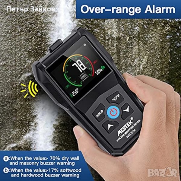 ПРЕДОСТАВЯ ВИ ОТЛИЧНО ИЗПИТВАНЕ ПРИ ИЗПОЛЗВАНЕ: Функция за аларма за превишаване: когато стената е суха, стойност на откриване на зидария > 70%, мека дървесина, стойност на откриване на твърда дървесина > 17%, зумерът алармира.