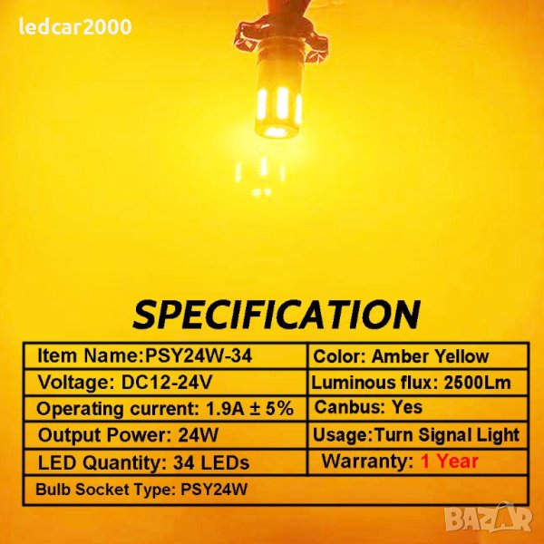 Лед Крушки Led PSY24W *CANBUS*