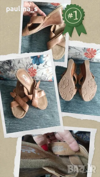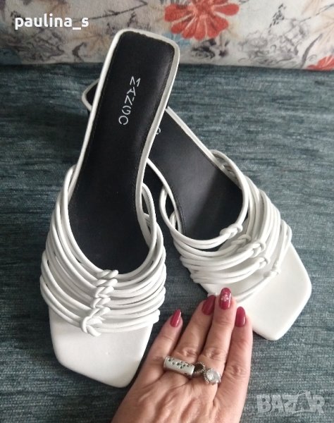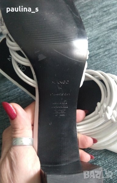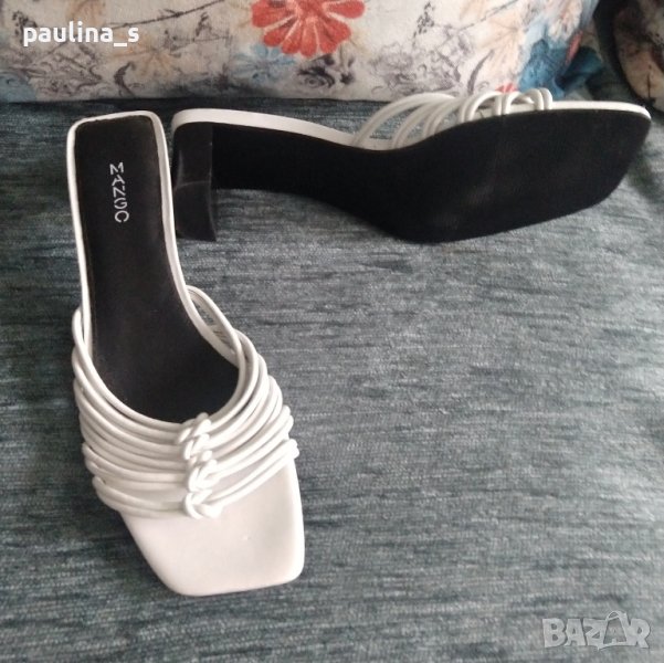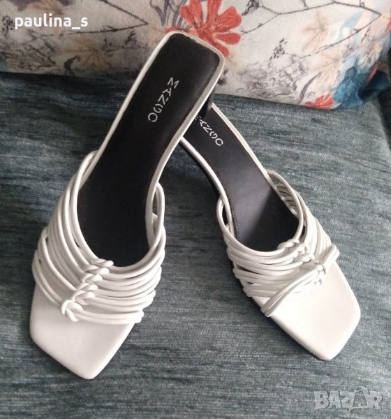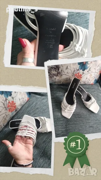 1️⃣ . Колаж / Бели "Mango" N 39/40. Цената е крайна 49,99лв. Маркови чехли от естествена кожа на каишките, в тренди стил, на практика са нови. Само са пробвани, без дефекти, една бройка. Стелка 26см / 9см за тясно ходило / Токче 5см.