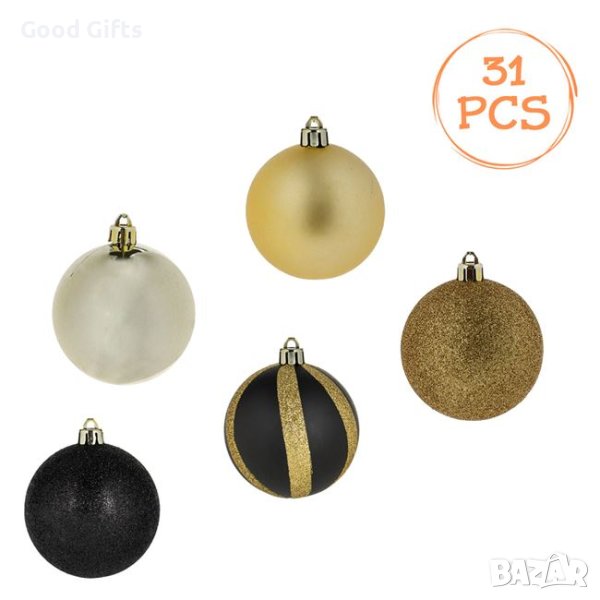 31 броя Комплект коледни топки, Златни и черни- 7см