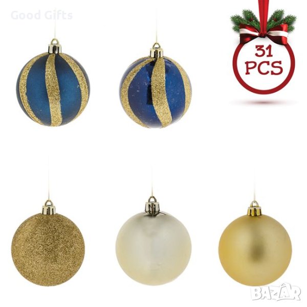 31 броя Комплект коледни топки, Златни и Сини → Обява 42672055