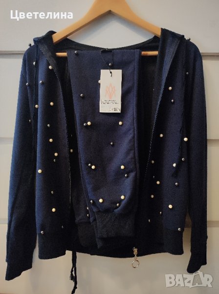 Дамски комплект в тъмносиньо с перли размер S цена 33 лв.