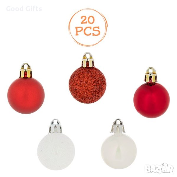20 броя Комплект коледни топки, Червени и Бели, 3см → Обява 42673123