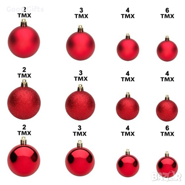 52 броя Комплект Червени коледни топки в 4 размера → Обява 42673488