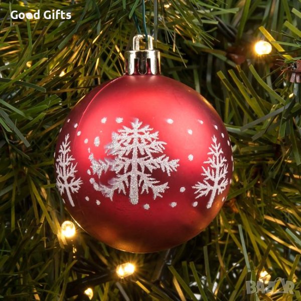 6 броя Комплект Червени коледни топки с елха, 6см → Обява 42673572
