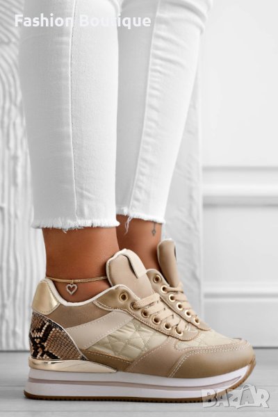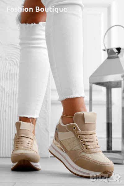 Нов модел дамски спортни обувки в бежово, номера - 36 37 38 39 40, дебелина на подметката отпред - 3см, дебелина на подметката отзад - 6см.