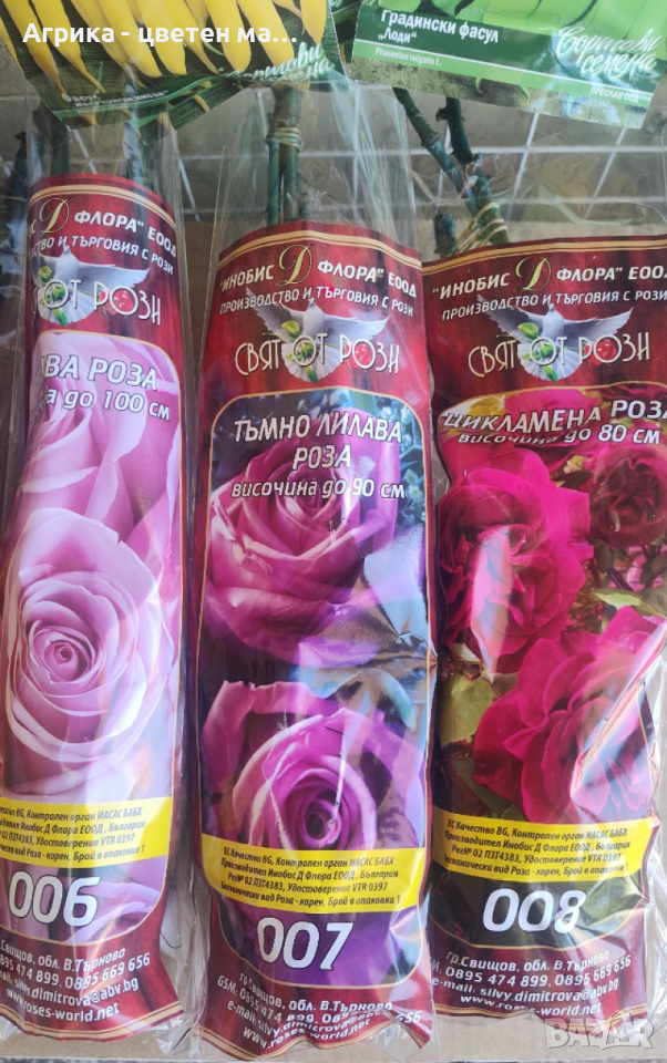 Корени рози може да купите и на място в селскостопанска аптека и цветен магазин Агрика - Исперих, в близост до автогарата. Предлагаме и