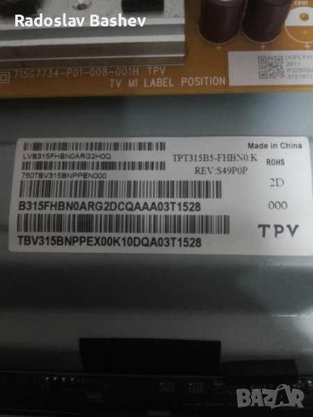 Philips 32PFS5823/12 на части,Panel-TPT315B5-FHBN0.K счупен.