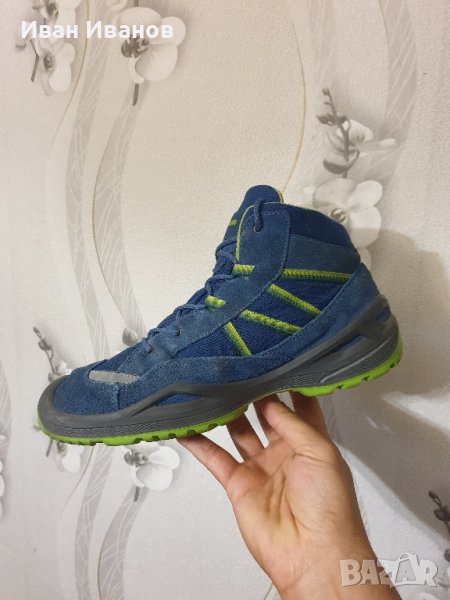 Туристическите обувки Simon II на Lowa са предназначени за деца, които ще предприемат предизвикателни разходки. Тази обувка има горна част, която съчетава велур и плат, за да създаде твърда обувка, която не е твърде тежка и има добра дишаемост. За да се гарантира, че тази обувка е водоустойчива и има много комфорт, подплатата е изработена от материал Gore-Tex. Този материал ще запази краката на вашето дете сухи. В удължена височина обувката поддържа рамката на крака и осигурява добра стабилност, особено на хълмисти терени. Подметката е подметка AL-K IV, която гарантира стабилност, докато технологията Monowrap се оформя към крака ви, за да получите още повече стабилност. Профилът е направен така, че да има отлично сцепление.
