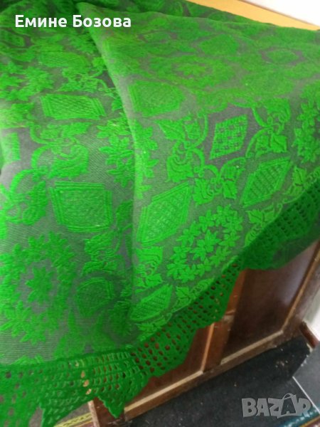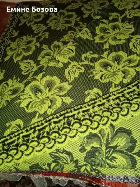 1.Зелено вълнена кувертюра с черно за легло със зелена ръчно плетена дантела шир.150 +15 дълж.210см.