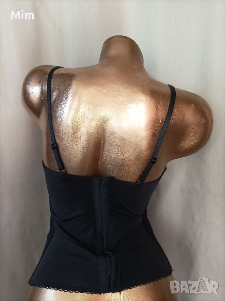 Чашката е твърда с банели, регулируеми презрамки двуредно закопчаване по цялата дължина с два отвесни банела .Подгръдна 80 до 95 см еластичност. Няма забележки.