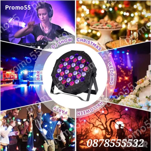 Лед Лампата е с 36 светодиодна светлина с ефект на RGB гладко смесване на цветовете за сценично осветление и осветление на DJ парти