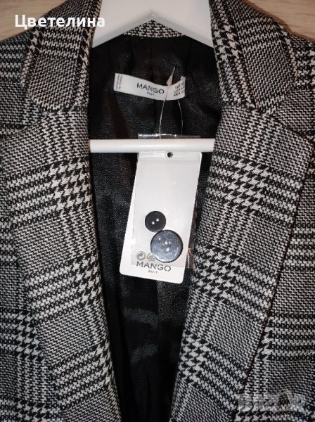Дамско вталено карирано сако на Mango размер XS цена 80 лв. + подарък спирала KYLIE 5 мл.