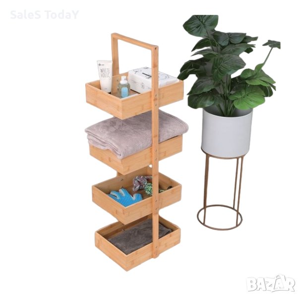 Стелаж с 4 бамбукови рафта с размери 32x24x8cm със същата рамка с дръжка отгоре.