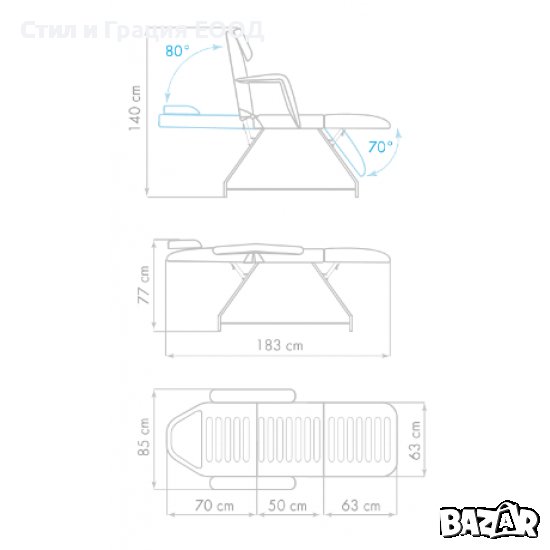 Фиксирана кушетка 3 Cuerpos - 180 x 63 x 75 cм
