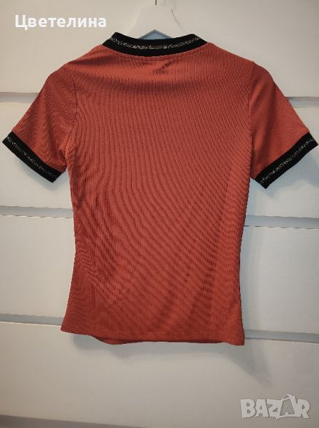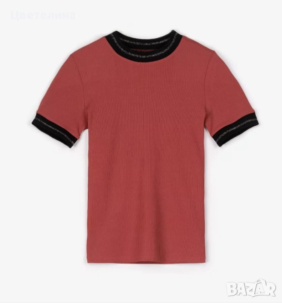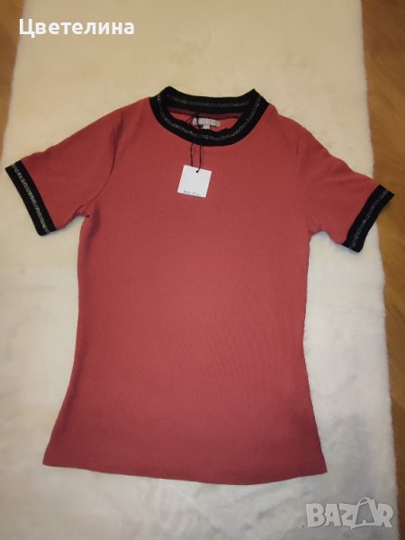 Дамска розова рипсена тениска с декорирана яка от ламе на GATE размер S цена 10 лв. + подарък шал