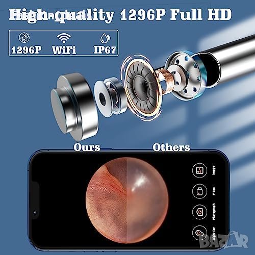 Нов VITCOCO Отоскоп 1080P FHD WiFi - Премахване на Ушна Кал с 6 LED