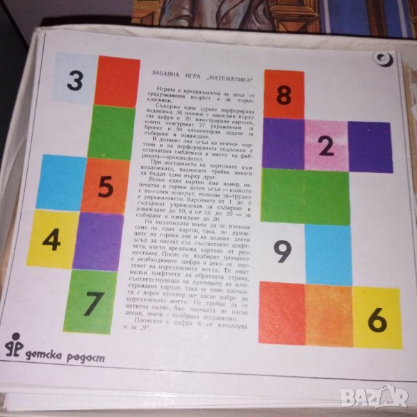 Изпращам по Еконт с 10% отстъпка от цената на таксата за доставка на пратката.Ретро игра Математика за деца предучилищна възраст и първокласници.27 упражнения за броене 94 задачи за събиране и изваждане 1986г.