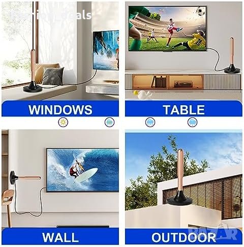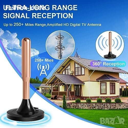 - Вътрешна антена за телевизор с диапазон 250+ мили