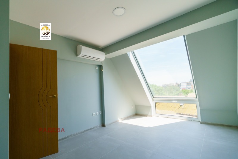 Агенция Радева отдава под наем просторен офис в бизнес сграда .Помещението е светло и готово за нанасяне .С възможност да бъде обединено със съседния офис ,при което общата площ ще бъде 272 кв. м .Климатици и собствен санитарен възел .Подходящо за различни бизнес дейности. В цената са включени разходите по общите части на сградата .Цената е без ДДС .